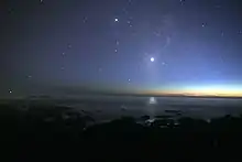 Η Αφροδίτη, ως Αποσπερίτης, πάνω από τον Ειρηνικό Ωκεανό. Πάνω αριστερά ορατός ο Δίας