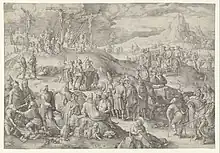 γκραβούρα του Λούκας φαν Λέιντεν (1494-1533) που απεικονίζει τον Γολγοθά