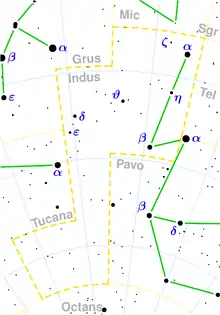 - όνομα αστερισμού του νότιου ημισφαιρίου. Ανήκει στους 12 αστερισμούς που δημιούργησαν οι Pieter Dirkszoon Keyser και Frederick de Houtman από το 1595 ως το 1597 (πρωτοεμφανίσθηκε στην Ουρανομετρία του Johann Bayer το 1603) και στους 88 επίσημους αστερισμούς που το 1922 θέσπισε η Διεθνής Αστρονομική Ένωση