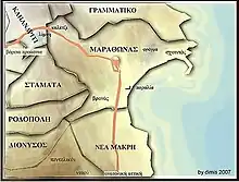 - (πόλη, ιστορία) δήμος της Αττικής, γνωστός για την αρχαία μάχη που δόθηκε εκεί και για την παράδοση του αγωνίσματος του Μαραθωνίου