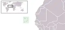Η θέση του Πράσινου Ακρωτηρίου στον Ατλαντικό Ωκεανό.