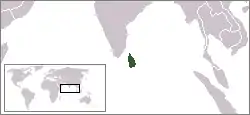 Η θέση της Σρι Λάνκα, νότια της Ινδίας.