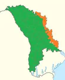 Η θέση της Υπερνειστερίας (με πορτοκαλί) στον χάρτη της Μολδαβίας
