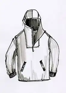 - (ενδυμασία) μπουφάν, βαρύ αντιανεμικό και αδιάβροχο πανωφόρι με κουκούλα και ζεστή γούνινη ή πουπουλένια επένδυση