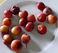 - ≈ συνώνυμα: ούβο, σκαρουχιά, σουρβιά - επίσης, αγριομηλιά[1]