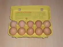 - (κουζινικά) σκεύος ή συσκευασία ειδικά διαμορφωμένη για την τοποθέτηση αβγών
