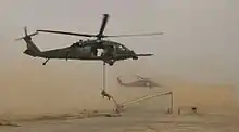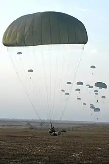 - (στρατιωτικός όρος, αεροπορικός όρος) απόβαση που επιχειρείται με αεροπλάνα και ελικόπτερα,