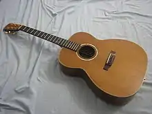 - ακουστική κιθάρα < αγγλική acoustic guitar, όρος που επινοήθηκε μετά την εφεύρεση της ηλεκτρικής κιθάρας για να γίνει η αντιδιαστολή με το νέο τύπου ηλεκτρικό όργανο που δεν είχε κοίλο σώμα