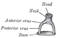 - (ανατομία) ένα από τα τρία ακουστικά οστάρια του μέσου ωτός που έχει σχήμα όμοιο με του αναβολέα σέλας (γι' αυτό και η ονομασία).