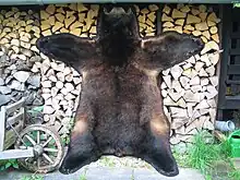 αρκουδοτόμαρο μπροστά σε καυσόξυλα