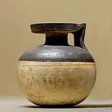- (αρχαιολογία, κεραμική) μικρό αγγείο στο οποίο φυλάσσονταν το λάδι των αθλητών στους αγώνες