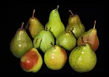 - αχλάδι < (κληρονομημένο) μεσαιωνική ελληνική *ἀχλάδιον < ἀχλάδα < ελληνιστική κοινή ἀχλάς < αρχαία ελληνική ἀχράς