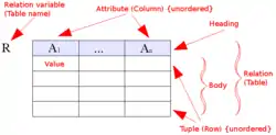 (βάσεις δεδομένων) Η παραπάνω σχέση (ή οντότητα ή πίνακας) R(A1...An), είναι βαθμού