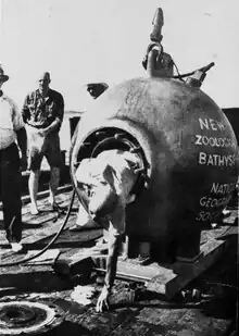 - (ναυτικός όρος) ατσαλένιο σκάφος σφαιρικού σχήματος, που καταδύεται (επαδρωμένο ή όχι) σε μεγάλα βάθη, δεμένο με καλώδιο από κάποιο πλοίο, προκειμένου να γίνουν υποθαλάσσιες παρατηρήσεις [1]