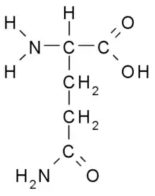 - (βιοχημεία, αμινοξύ) μη απαραίτητο αμινοξύ με τύπο H2N-CO-(CH2)2-CH(NH2)-COOH και σύμβολο Gln ή Q. Είναι αμίδιο του γλουταμινικού οξέος
