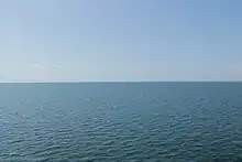 Η γραμμή του ορίζοντα χωρίζει τον ουρανό από τη θάλασσα.