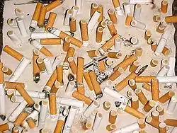 - αυτό που μένει από το τσιγάρο αφού κάποιος το έχει καπνίσει