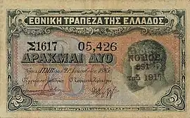 Εθνική Τράπεζα της Ελλάδος: χάρτινο δίδραχμο έκδοσης του 1885