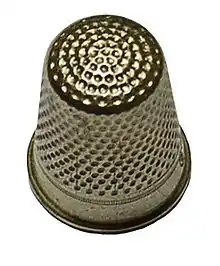 - μικρό μεταλλικό ή πλαστικό εξάρτημα, σε σχήμα κύπελλου, που φοριέται στην άκρη του δαχτύλου για να μπορεί αυτός που το χρησιμοποιεί να σπρώχνει βελόνα για ράψιμο, συνήθως με μικρές εσοχές στην επιφάνεια ώστε να μη γλιστράει η βελόνα