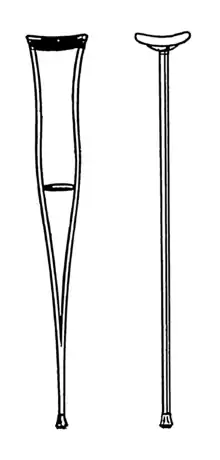- ψηλή ράβδος με κάθετο στέλεχος που στερεώνεται κάτω από τη μασχάλη· χρησιμοποιείται από άτομα με κατάγματα ή άλλες κακώσεις στα πόδια
