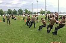- παιχνίδι ανταγωνισμού με σχοινί ή άλλο μηχανισμό, στα άκρα του οποίου βρίσκονται αντίπαλα άτομα ή ομάδες που προσπαθούν, τραβώντας το σχοινί ή το μηχανισμό, να παρασύρουν τον αντίπαλο προς το μέρος τους