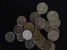 - δραχμή < (διαχρονικό δάνειο) αρχαία ελληνική δραχμή[1]