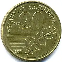 μεταλλικό εικοσάδραχμο (1990)