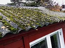 - (παρωχημένο) πλάκα αμιαντοτσιμέντου (αμιαντοσανίδα) που χρησιμοποιείτο στην κατασκευή στέγης (ή υπόστεγου), με σχήμα κυματοειδές σε απομίμηση κεραμοσκεπής, καθώς και σωλήνες από το ίδιο υλικό
