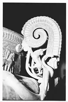 Περίτεχνη λαβή ελικωτού κρατήρα.