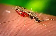κουνούπι πάνω σε ανθρώπινη επιδερμίδα