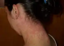 - ερύθημα < (διαχρονικό δάνειο) αρχαία ελληνική ἐρύθημα < πρωτοϊνδοευρωπαϊκή ρίζα *h₁rewdʰ- (ερυθρός, κόκκινος)