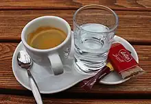 σερβιρισμένος εσπρέσο, με νερό και μπισκότο
