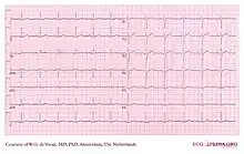 - (ιατρική) η γραφική παράσταση που εκτυπώνει ο ηλεκτροκαρδιογράφος και απεικονίζει την ηλεκτρική δραστηριότητα της καρδιάς