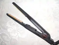 - ηλεκτρική συσκευή με σχήμα λαβίδας ή ψαλιδιού, με δύο μακρόστενες επίπεδες επιφάνειες ανάμεσα στις οποίες πιέζονται και θερμαίνονται τα μαλλιά για το ίσιωμά τους, για να μην είναι σγουρά