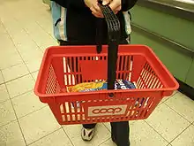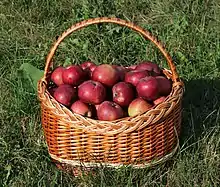 - σκεύος από πλεγμένο καλάμι για προσωρινή αποθήκευση και μεταφορά αντικειμένων, όπως φρούτων και λαχανικών