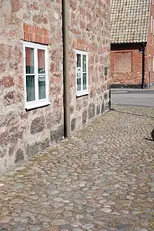 - λιθόστρωτος δρόμος του οποίου οι πέτρες δεν είναι κατεργασμένες