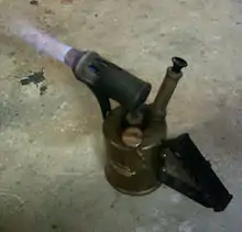 - (κατ’ επέκταση) ανάλογη συσκευή που από ειδικό επιστόμιο βγάζει ρυθμιζόμενη φλόγα για διάφορες χρήσεις και εργασίες