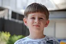 παιδί με κούρεμα καπελάκι