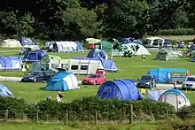 - (κατ’ επέκταση) το σύνολο των ατόμων που κατασκηνώνουν σε έναν χώρο