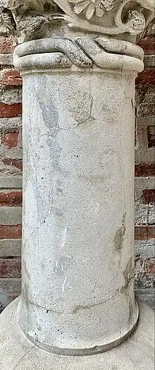 - κιονίσκος < (διαχρονικό δάνειο) ελληνιστική κοινή κιονίσκος, υποκοριστικό του κίων[1]