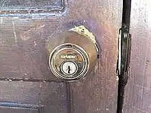 - Μηχανισμός που ασφαλίζει την είσοδο ενός χώρου (σπιτιού, καταστήματος, δωματίου, κτλ...) με τη βοήθεια ενός κλειδιού.