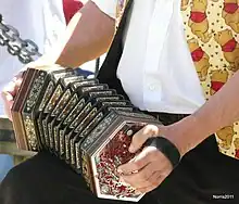- κονσερτίνα < (μεταφραστικό δάνειο) αγγλική concertina