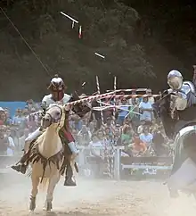 - αγωνίζομαι στο πολεμικό αγώνισμα της κονταρομαχίας