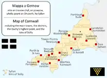 Δίγλωσσος χάρτης της Κορνουάλης (στα κορνουαλικά και στα αγγλικά).