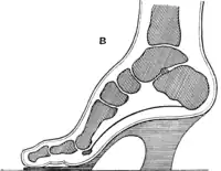 - κουντεπιέ < απροσάρμοστο άμεσο δάνειο από τη γαλλική cou-de-pied (cou 'λαιμός' του pied ποδιού) που συχνά συγχέεται με το ομόηχο γαλλικό coup de pied (coup κλοτσιά με το πόδι)