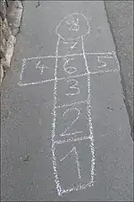 διάδρομος για κουτσό χαραγμένος με κιμωλία στο πεζοδρόμιο