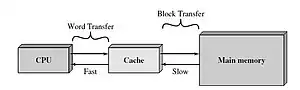 - ※ Όταν ο επεξεργαστής ζητά πληροφορίες από τη μνήμη, η κρυφή μνήμη είναι η πρώτη που εξετάζεται για να διαπιστωθεί αν περιέχει αυτά τα δεδομένα (αυτό γίνεται γιατί είναι πολύ γρήγορη). Αν ναι, τα δεδομένα διαβάζονται από εκεί, διαφορετικά διαβάζονται από την κύρια μνήμη και δίνονται και στον επεξεργαστή αλλά και στην κρυφή μνήμη, για την περίπτωση που χρειαστούν στο κοντινό μέλλον.[1]