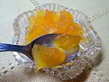 - (γλυκό) ένα είδος γλυκού του κουταλιού, συνήθως μαζί με λίγα αμύγδαλα