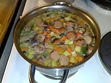 - λουκανικόσουπα < λουκάνικ(ο) + -ό- + -σουπα