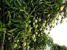 - (φυτό) αειθαλές δέντρο (το είδος Mangifera indica) με μικρά άσπρα άνθη· κατάγεται από την Ινδία και παράγει το ομώνυμο φρούτο